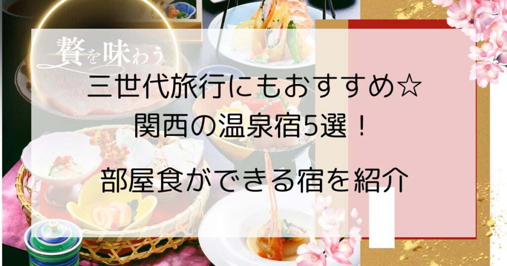 関西で3世代旅行におすすめの温泉宿を紹介します。 家族みんなでのんびり過ごしたいとき、部屋食があると気兼ねなく楽しめますよね。 こんなお悩みありませんか? 小さな子どもがいるので、食事会場で周りに気を使わずに食べたい 高齢の家族が一緒だから、... -